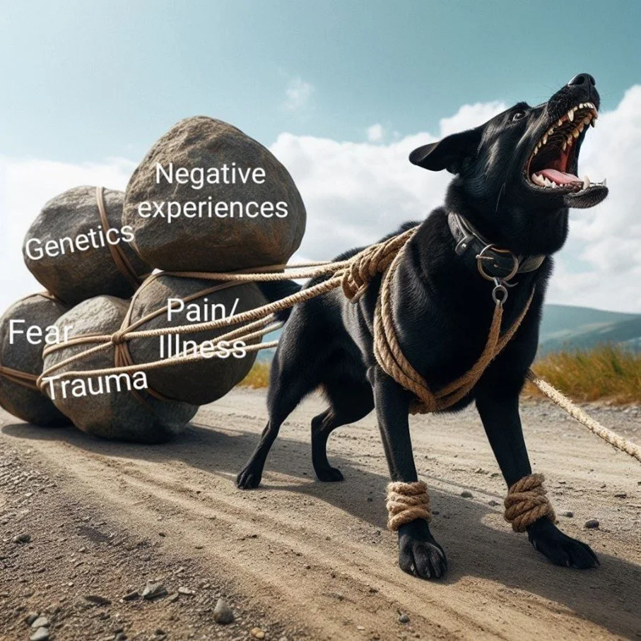 Furthermore, “reactive” is a very vague unhelpful label in that a “reactive” dog may be struggling with a variety of things. Their behaviours may look the same: growling, barking, lunging, snapping and so on but the underlying cause of these behaviours can differ.